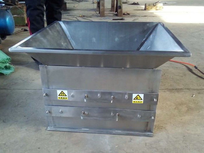 強磁除鐵器利用磁鐵吸附鐵制品的特性,達到有效范圍內除鐵的效果。在強磁除鐵器內部,一種具有高矯頑力和高剩磁的特殊永磁體“釹鐵硼”被用于形成復合磁系統。它具有免維護、磁力強、壽命長、安裝簡單、使用方便、運行可靠等優點,適用于皮帶機,振動輸送機、電磁振動給料機、平板除鐵器、下料溜槽等非磁性物料的除鐵。去除0.1~35公斤鐵磁物質,內置永磁強磁除鐵器系統使用壽命10年以上。永磁體吸附鐵磁體較多時,可用無磁刮刀手動清除,或戴手套清除,適合連續工作,鐵質少。